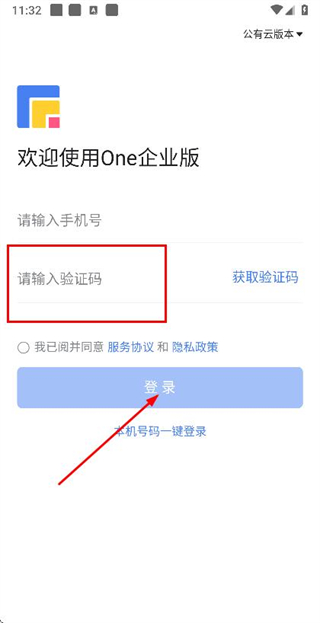 3、在验证码输入框中填写收到的验证码,点击登录完成账号的登录操作。