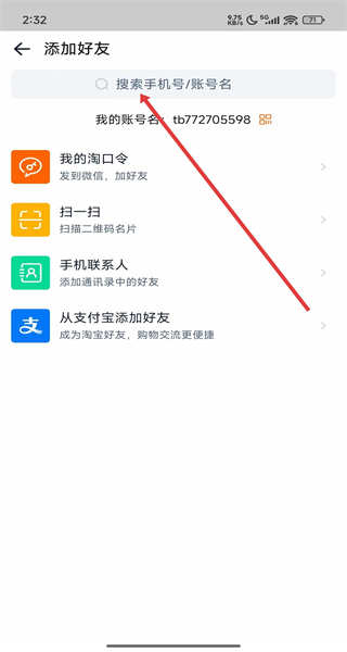 3、在跳转到添加好友页面后,可以点击上方搜索栏,进行搜索添加好友。