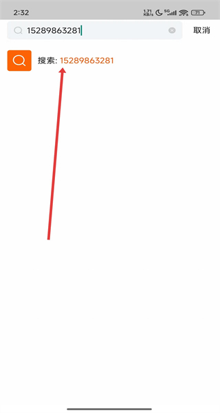 4、在搜索页面中,点击输入框填写好友的手机号后,点击下方搜索结果进行添加。
