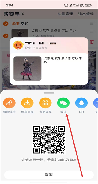 3、点击勾选商品后,可以点击分享按钮,分享商品信息。