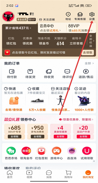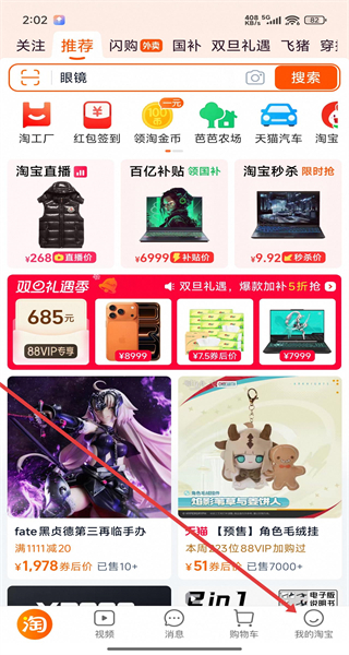 1、在进入到淘宝首页中,可以点击下方我的淘宝按钮,进入个人主页。