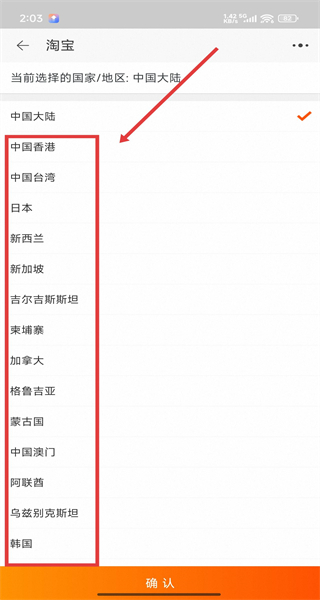 4、在更改地区界面中,可以在点击选择下方任意地区后,点击确认按钮完成更改。