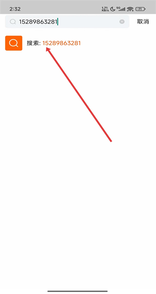 4、在搜索框输入手机号,点击“搜索:15289863281”,完成好友搜索添加操作。