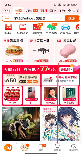 1. 淘宝双12,官方立减商品8.8折起,叠券7.7折起