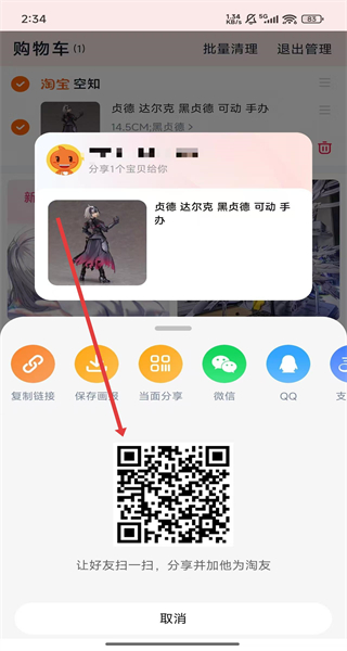 4、可以通过保存二维码图片,让好友扫描的方式进行分享。