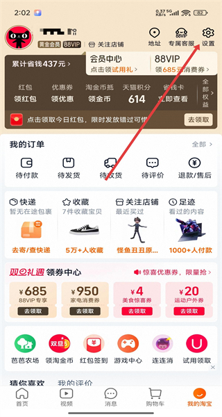 1、在淘宝首页,点击底部的“我的淘宝”选项,进入个人中心界面。