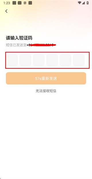 3、在输入短信验证码页面填写收到的验证码,完成账号的登录操作。