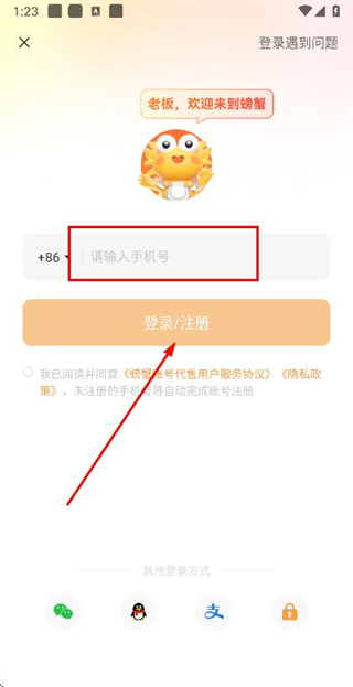 2、在手机登录页面填写手机号,勾选协议后,点击获取验证码。