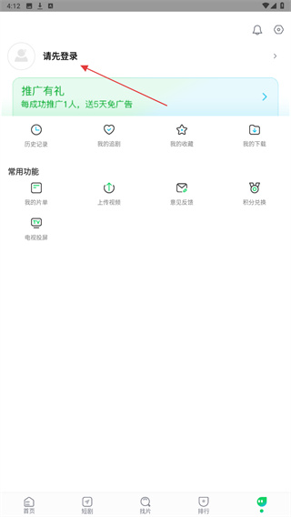 2、进入我的页面内,点击最上方请先登录的区域。