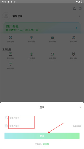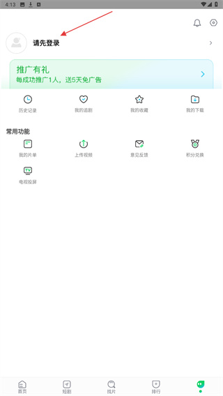 2、进入个人中心页面,点击上方请先登录的按钮。