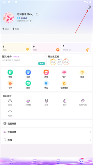2、在个人主页内,点击右上角的设置按钮进入设置界面。