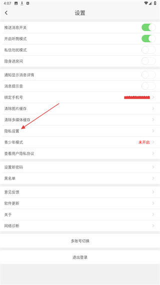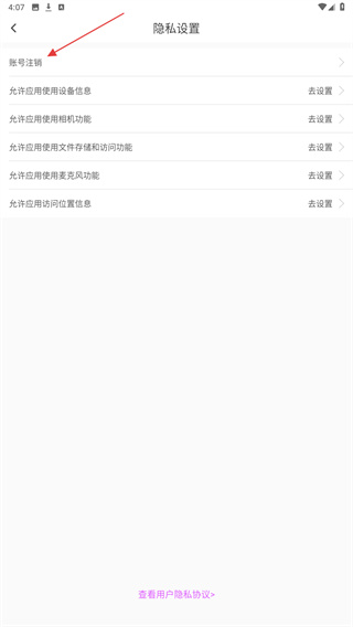 4、在隐私设置页面中,点击账号注销选项即可完成注销。
