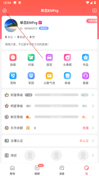 1、打开乐嗨直播APP,在个人页面中,点击左上角的设置图标,进入设置界面。