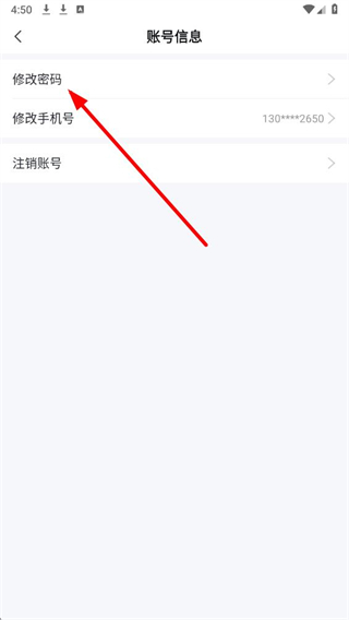 4、在账号信息页面,点击修改密码选项,按提示完成身份验证后即可设置新密码。