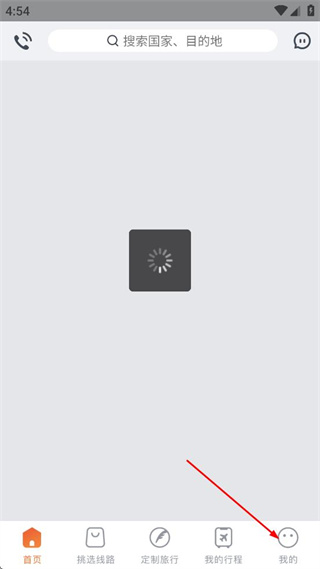 1、打开世界邦应用,看到页面处于加载状态,点击底部导航栏最右侧的我的选项,进入个人页面。