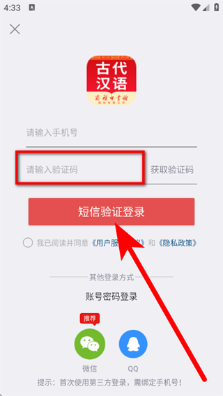 4、输入验证码,勾选协议后,点击短信验证登录,完成登录。