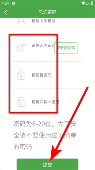 4、输入验证码,设置密码,完成后,点击提交,完成密码重置。