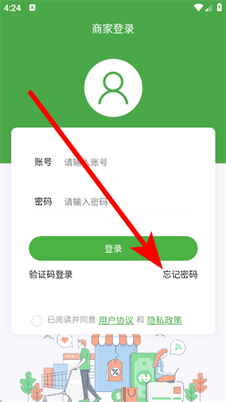2、在商家登录页面,点击忘记密码,进入忘记密码页面。