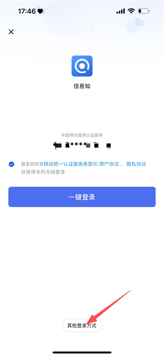3、在登录页面,点击其他登录方式选项,切换至密码登录界面。