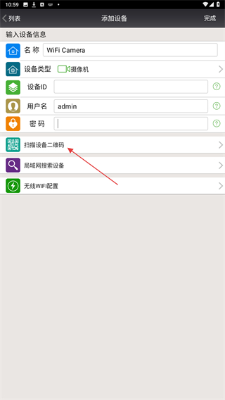 2、进入添加设备的页面内,点击下方扫描设备二维码的按钮。