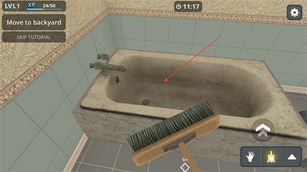 4、切换到界面右下角的刷子工具,点击脏污的设施,通过工具操作完成设施的污渍清洁,完成基础翻新步骤。