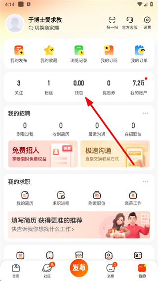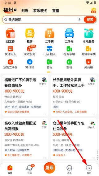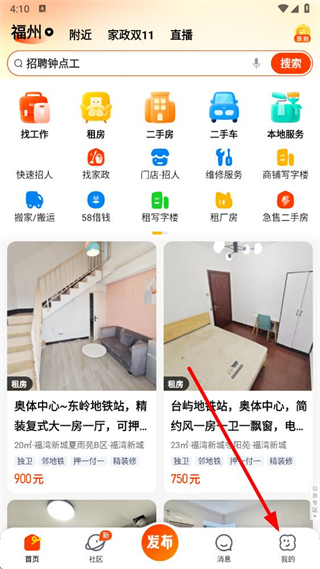 1、打开58同城APP,在首页点击右下角我的进入个人页面。