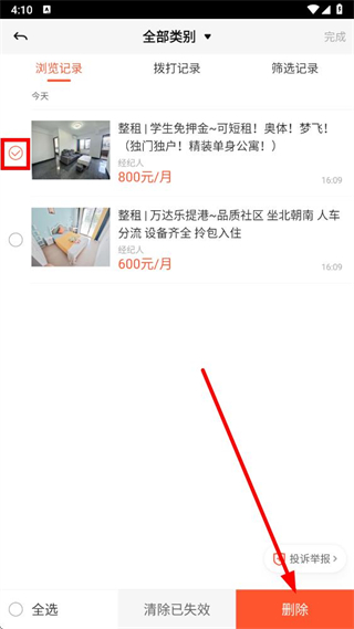 4、勾选要删除的浏览记录,然后点击右下角的删除按钮即可完成删除。