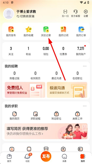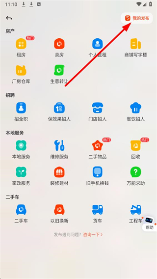 2、在发布分类页面中,点击右上角我的发布选项,可跳转至发布记录的管理页面。