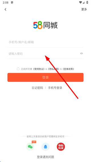 3、在界面依次输入手机号/用户名/邮箱和密码,勾选同意相关协议后点击登录按钮,完成密码登录操作。