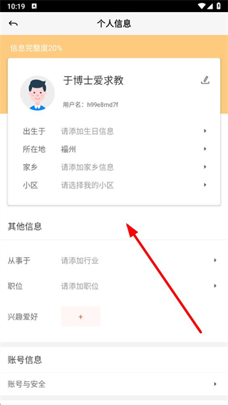 4、在个人信息页面,可对个人信息进行填写或修改,完成后即可更新个人资料内容。