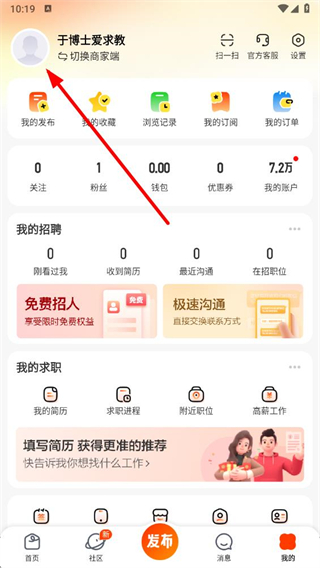 2、在当前页面中,点击左上角的头像区域,进入个人主页界面。