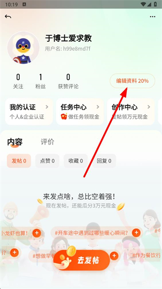 3、在个人主页界面,找到编辑资料选项并点击,进入个人信息编辑页面。