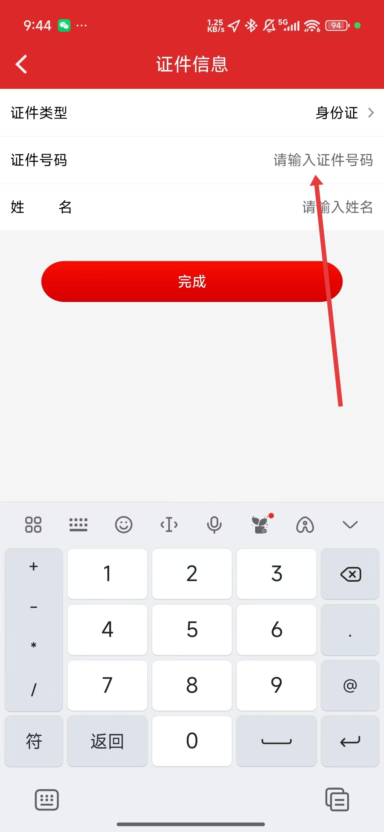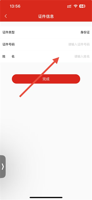 3、在证件信息界面,填写或修改证件号码、姓名等内容,确认信息后点击完成按钮保存修改。