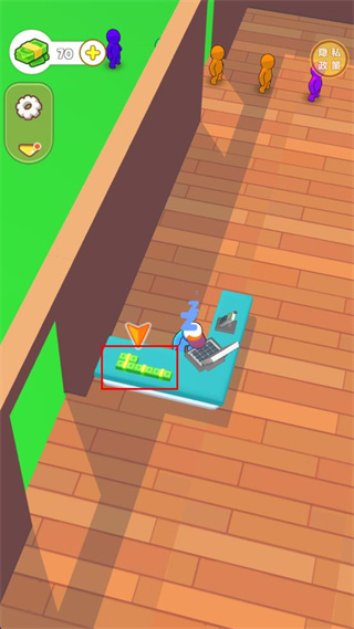 4、待吧台处出现绿色金币道具,点击该道具,完成本次经营操作的收益领取。