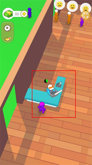 3、等待蓝色角色移动至吧台位置,观察紫色角色靠近吧台,完成基础的经营互动。