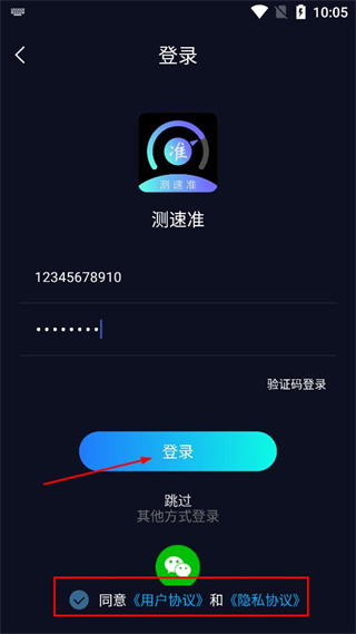 4、勾选同意用户协议和隐私协议的选项,点击登录按钮,完成账号登录流程。