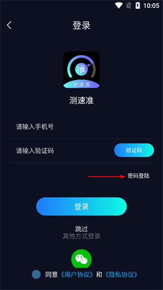 2、进入登录页面后,找到密码登陆选项并点击,切换至密码登录的输入界面。