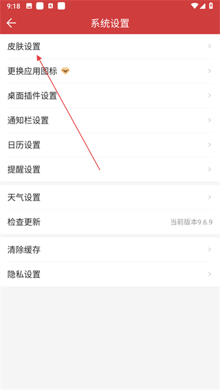 3、在系统设置页面,点击皮肤设置选项,进入日历皮肤设置界面。