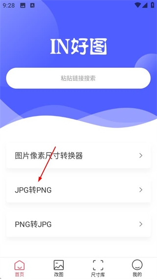1、在IN好图首页,点击JPG转PNG选项,进入选择图片页面。