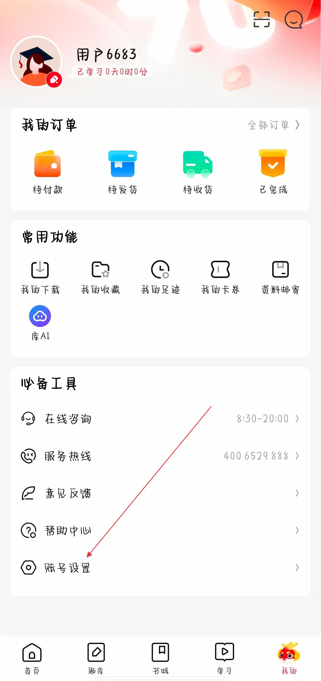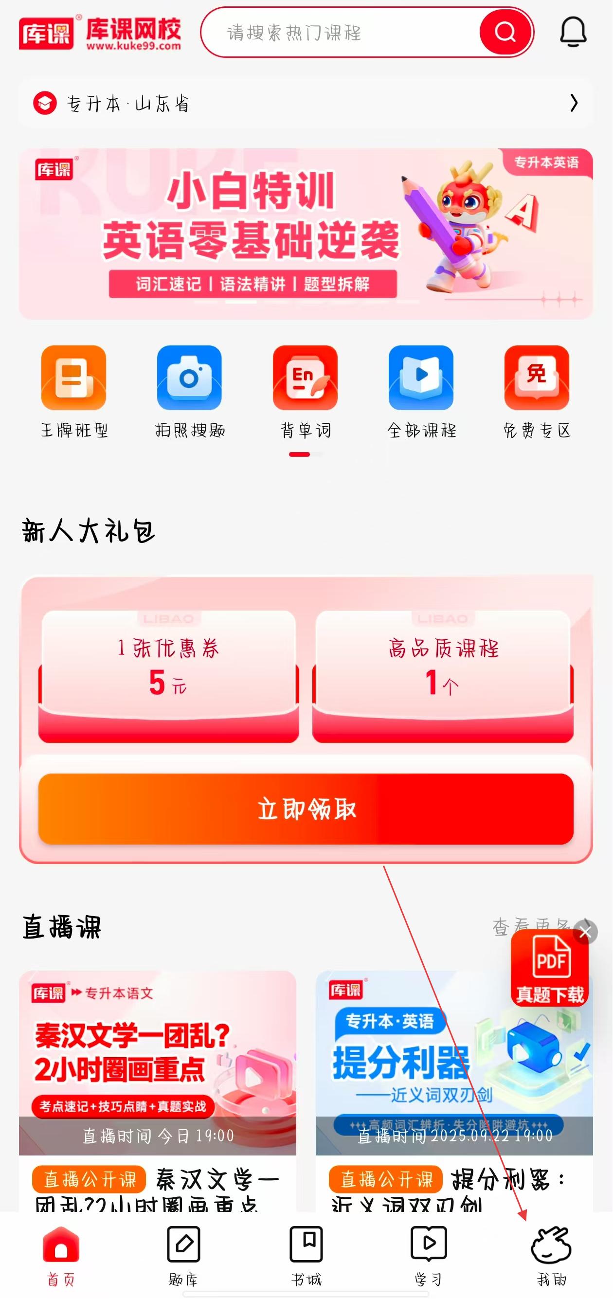 1、打开库课网校APP,点击底部导航栏我的,进入个人页面。