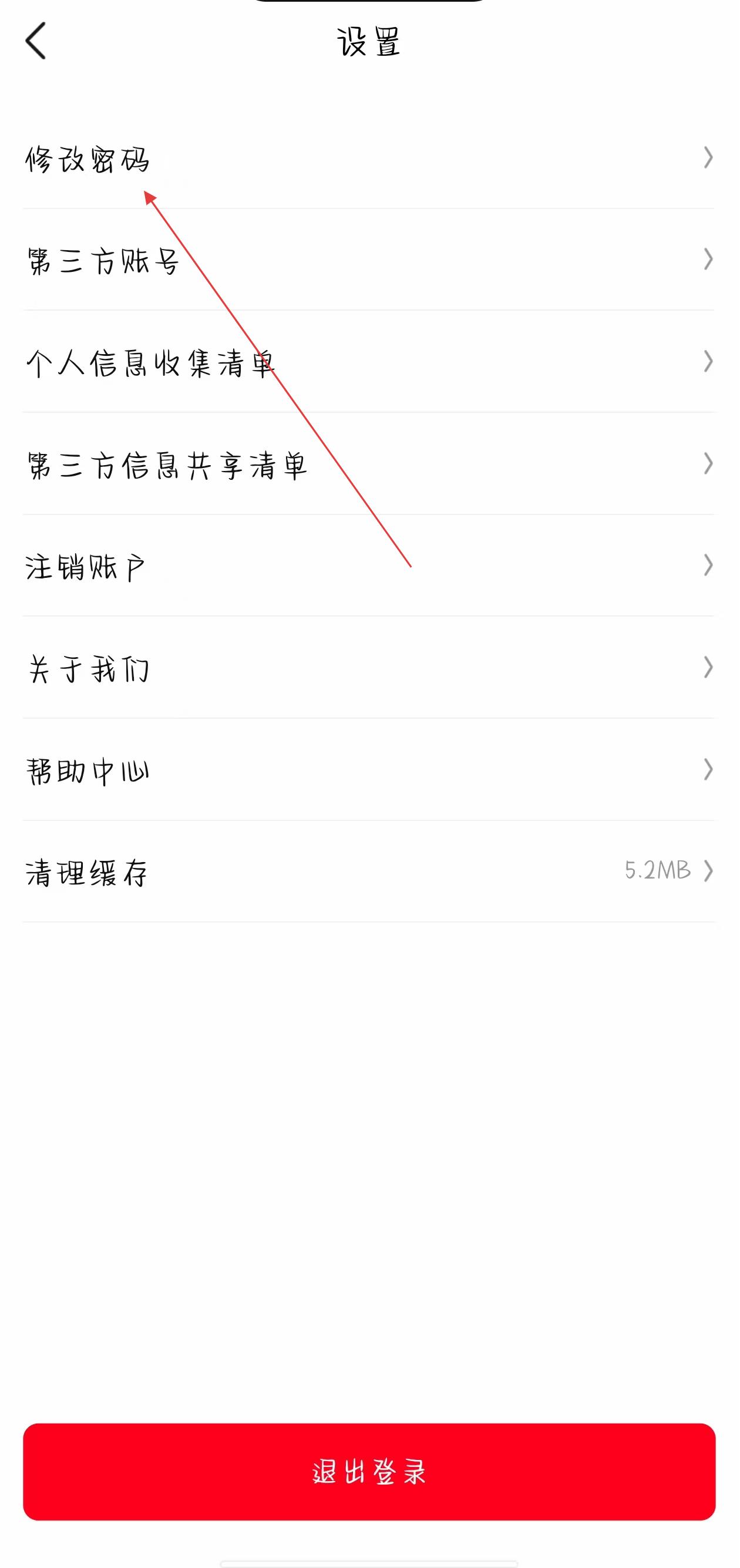 3、在设置界面里,点击修改密码选项,进入修改密码页面。