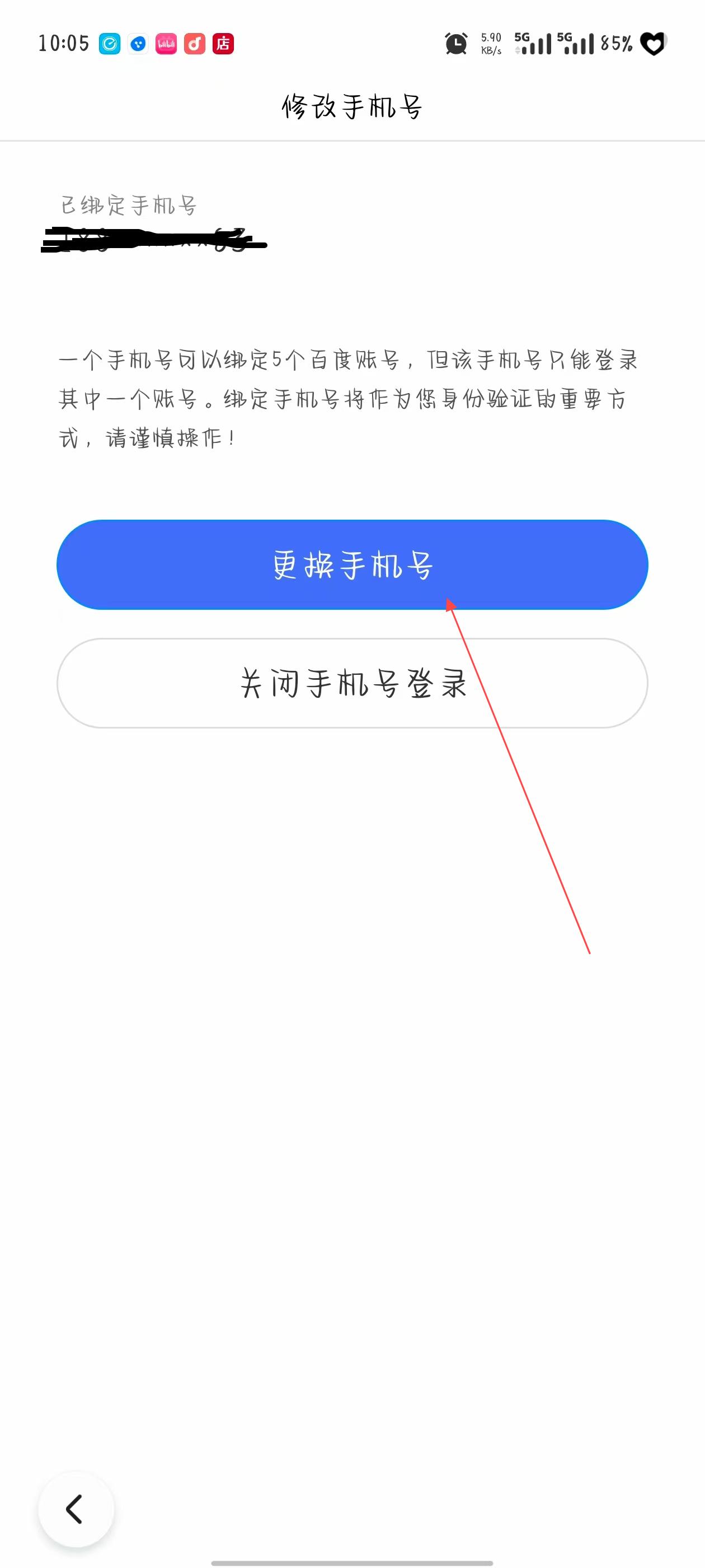 2、在账号管理页面,点击绑定手机选项,进入修改手机号页面后,点击更换手机号按钮,按提示完成原手机号身份验证。