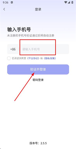 2、在手机登录页面填写手机号,勾选协议后,点击获取验证码。