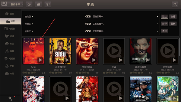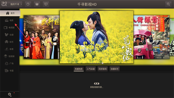 1、启动千寻影视的App,在首页左侧点击电影的标签。