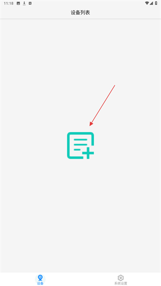 1、在设备列表页面,点击页面中间的添加图标,进入设备添加页面。