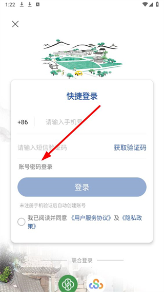2、进入对应界面后,点击账号密码登录选项,可切换至密码登录的输入模式。