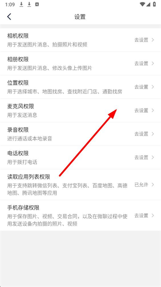 4、在权限管理页面,可查看相机、相册等各类权限的状态,点击对应权限后的去设置即可调整权限配置。