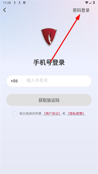 3、在登录界面中,点击右上角密码登录选项,切换至密码登录。