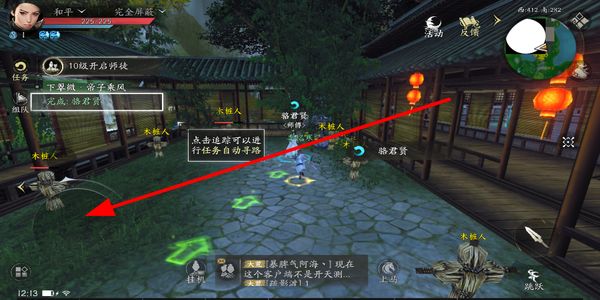 2、通过摇杆控制角色在场景中移动,调整方向抵达目标区域,配合任务追踪功能,推进任务流程。