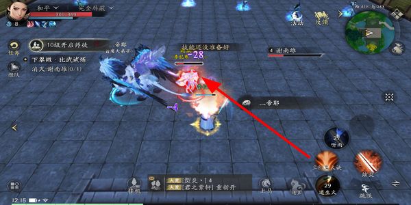4、在战斗场景中,释放技能攻击敌方目标,消耗其血量,完成战斗目标,推进对应的试炼进度。